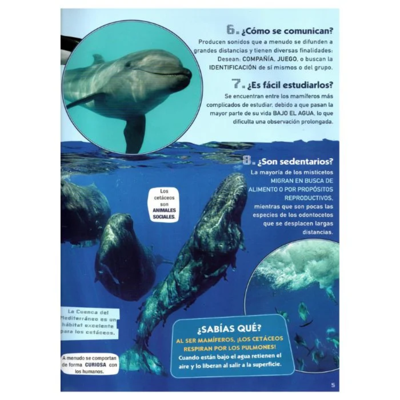 En este libro descubrirás: ¿Cómo se comunican los delfines? ¿Por qué migran las ballenas? ¿Duermen las ballenas? Además encontrarás muchas preguntas y respuestas para conocer y aprender sobre el asombroso mundo de los cetáceos más grandes e inteligentes de la Tierra.