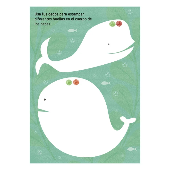 Libros de actividades de arte para pintar con tus huellas dactilares. Retira el set de almohadillas de tinta, presiona tu dedo sobre el color elegido y luego sobre una página para dejar una impresión colorida. Se divertirán dibujando y pintando con los dedos sus propias creaciones.