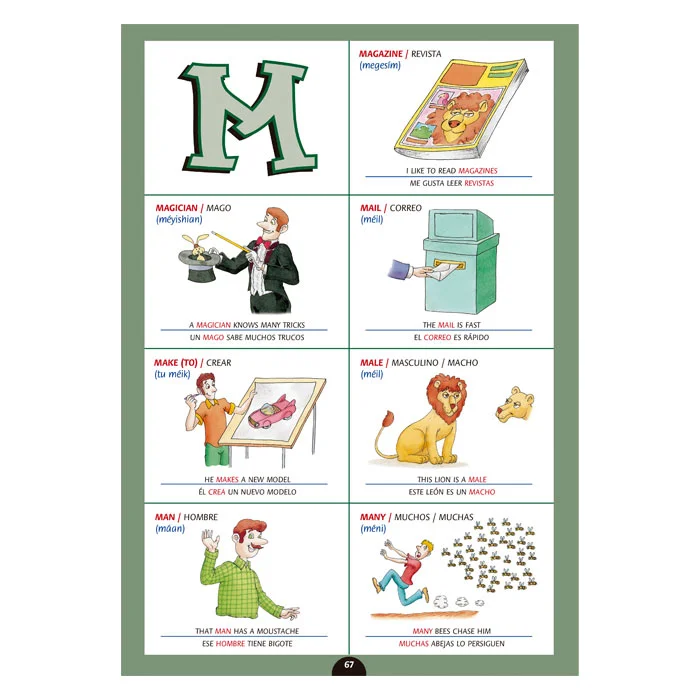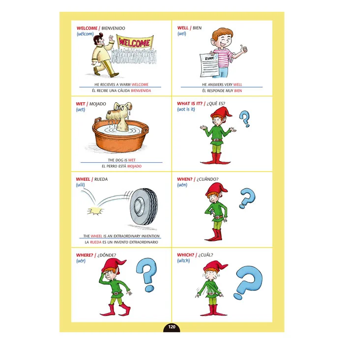 Cada palabra está acompañada de una ilustración y una oración que la contextualiza, ayudando al niño a comprender y recordar mejor el vocabulario. Una obra ideal para que los pequeños aprendan inglés de manera rápida, entretenida y significativa mientras desarrollan nuevas habilidades lingüísticas.