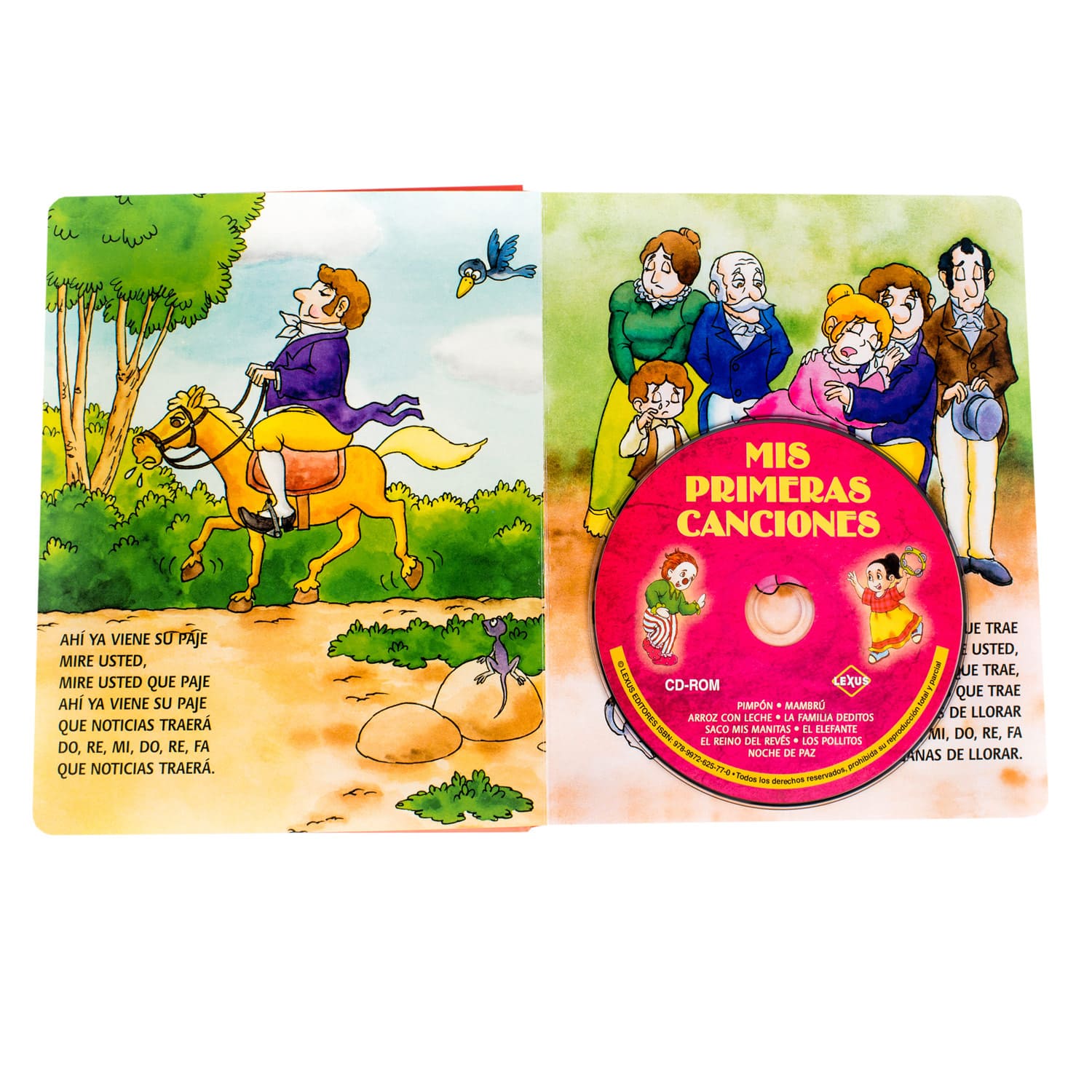 Mis primeras canciones recorre los temas más populares de la infancia y contiene sus letras en cada una de las páginas, con ilustraciones a color. Incluye un CD con los ritmos de cada canción.